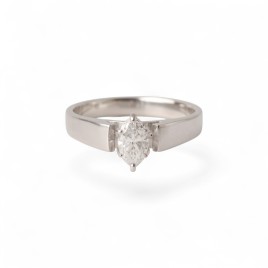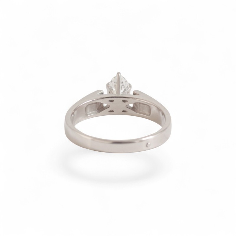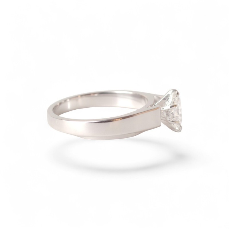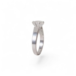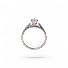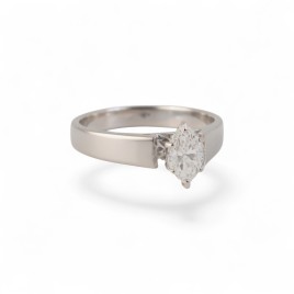 Bague solitaire en or blanc 14 carats sertie en son centre d'un diamant taille navette serti 6 griffes.